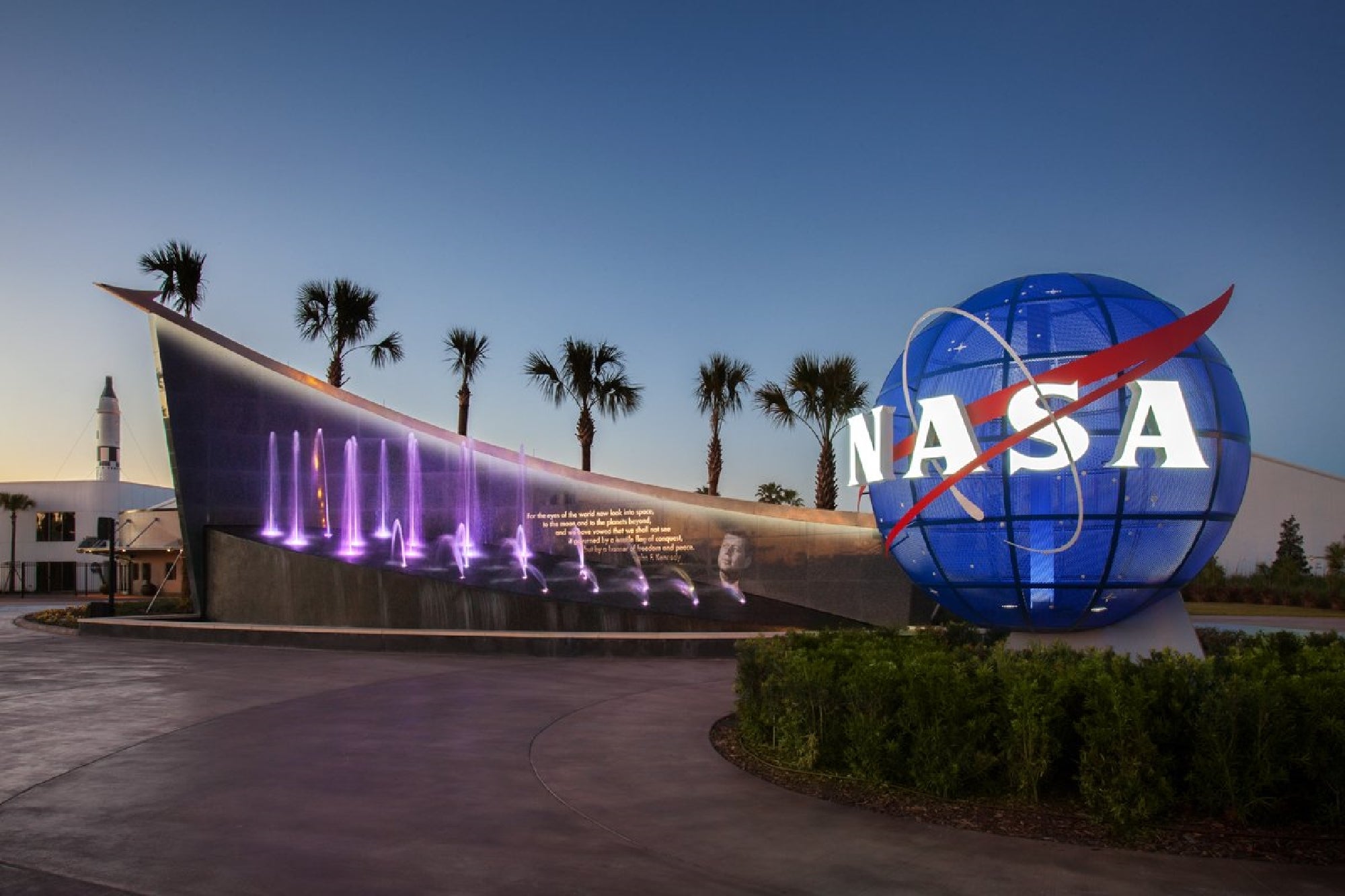 The Kennedy Space Center Visitor Complex is located on Merritt Island, Florida, about an hour east of Orlando.